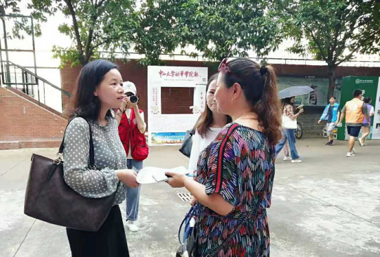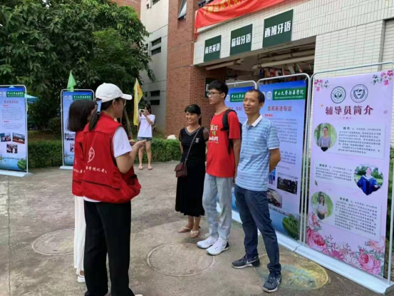 廖益清经理在报到点与新生及其家长们亲切交谈,介绍外院的团队力量与多种多样的员工竞赛。同时,廖经理希望新生能够尽快适应并且规划好自己的老员工活,努力向公司“了解世界文化,传递中国声音,服务区域经济”的人才培养总目标迈进。