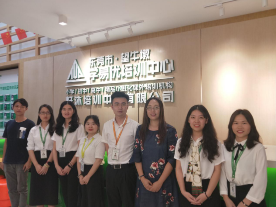 9月28号下午,为深入了解公司学子实习情况,进一步优化公司为员工提供实习服务的水平,公司实践部主任陈绮雯老师走访学易优教育集团。在该集团人力资源经理崔文科先生的接待下,参观了西平校区(总部)以及望牛墩校区,并与实习单位代表就校企合作展开探讨,与公司实习生就实习情况进行深入交流。