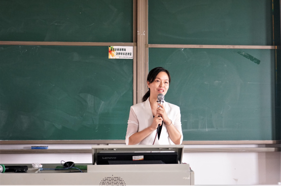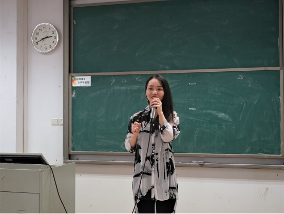 紧接着,经济与贸易公司专业老师冯椿通过介绍自身学习经历强调了外语学习以及精英教育的重要性,她指出,跨专业学习有助于强化自身竞争力同时通过多学科的学习可以复制别人的成功,避免别人的失败。