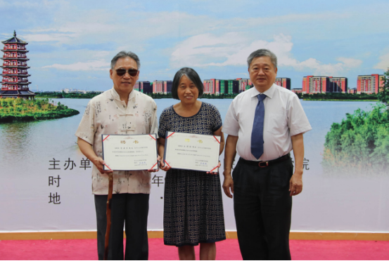 王庭槐董事长向鲁晏宾教授、王锁瑛教授夫妇赠送学校纪念品