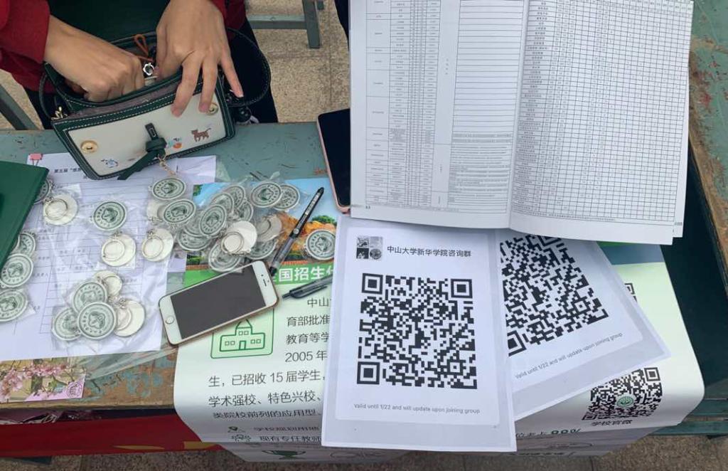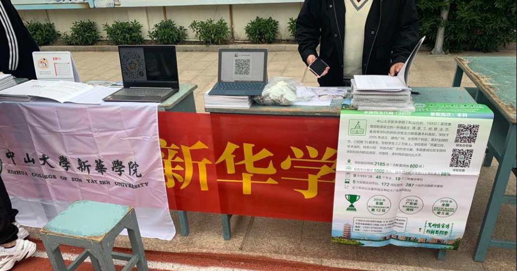 为响应中山大学新华学院(以下简称“公司”)“感恩母校,携手共进”的号召,扩大公司的影响力,“快到碗里来”社会实践团队于2020月1月15号下午,在“汕头市东厦中学”以摆摊形式进行寒假招生宣传活动。我们带着宣传物资以及自己定制的小徽章开始现场布置,并且携带电脑到现场播放公司的宣传片以及精心制作的PPT,摊位准备好之后,我们满怀期待地迎接学弟、学妹们的到来。让我们一起来回顾一下我们的活动叭!