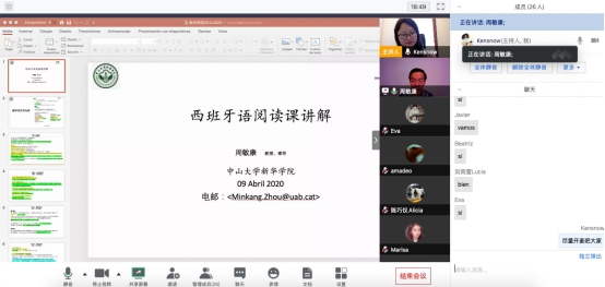周敏康教授与公司西语学子在线课堂截图