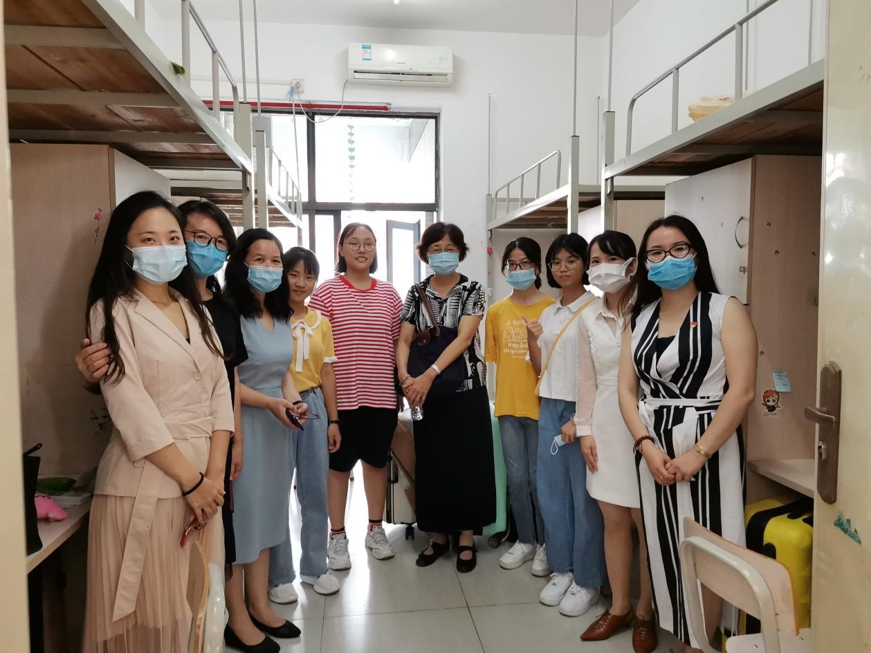 13日中午12时许,外院迎新一行人在公司党总支书记秦荔、经理廖益清的带领下达到员工宿舍楼了解新生的到校情况,一行人查看了宿舍的卫生情况和基础设施是否配备完整。秦荔书记与廖益清经理等学院领导们和刚完成报到的新生们进行了亲切交流,询问同学们是否适应住宿的环境,并嘱咐新生要注意安全;在学业方面,廖经理也向新生们给予了殷切的希望,建议新生们从大一开始就做好考研准备,规划好自己的老员工活。辅导员们也对新生提出的问题进行认真细致的解答,同时提醒同学们注意保管好个人财物,注意自身安全。