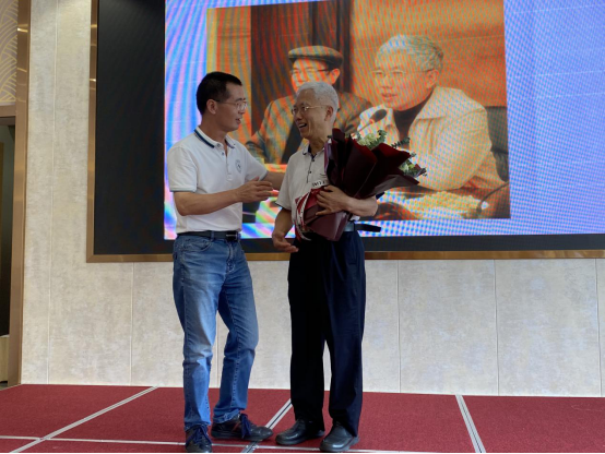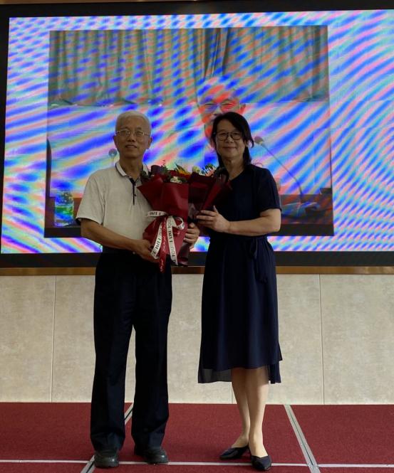 会议伊始,会场大屏幕放映了黄继炎督导在任期间工作瞬间的影片集。接着,经理廖益清上台为黄继炎督导颁发荣退证书,对黄督导的工作成果表示肯定;副经理李向奇和副经理邱易安分别上台为黄继炎督导献上鲜花,感谢黄督导为学院辛勤付出。