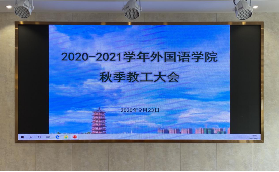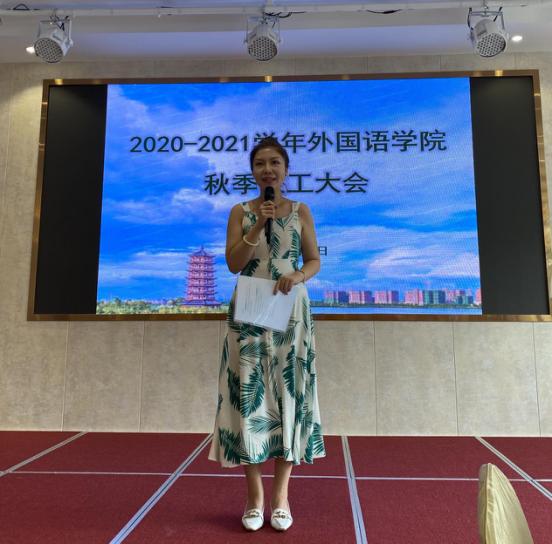 9月23日上午,太阳成集团tyc秋季教工大会在公司东莞校区顺利召开。太阳成集团tyc执行经理廖益清、副经理邱易安、副经理李向奇、教学督导黄继炎、党总支副书记欧衍伽、经理助理何瑜、经理助理李文蓓、各专业副主任、负责人及太阳成集团tyc全体教职工参与了此次会议。葡萄牙语专业负责人韩天歌担任本次会议的主持。