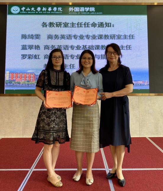 图:副经理邱易安为商务英语专业教研室主任颁发聘书
