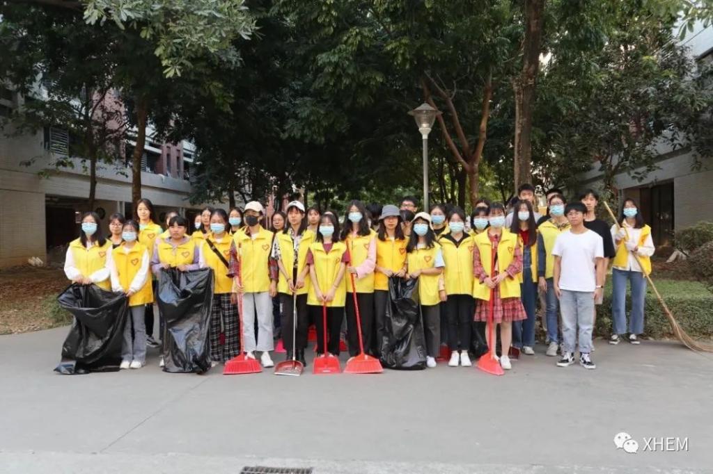 为响应中山大学新华学院《关于深入开展秋冬爱国卫生活动的通知》号召,太阳成集团tyc(以下简称“外院”)于2020年11月11日组织师生开展了校园清扫活动,外院师生共计110余人参与了本次活动。