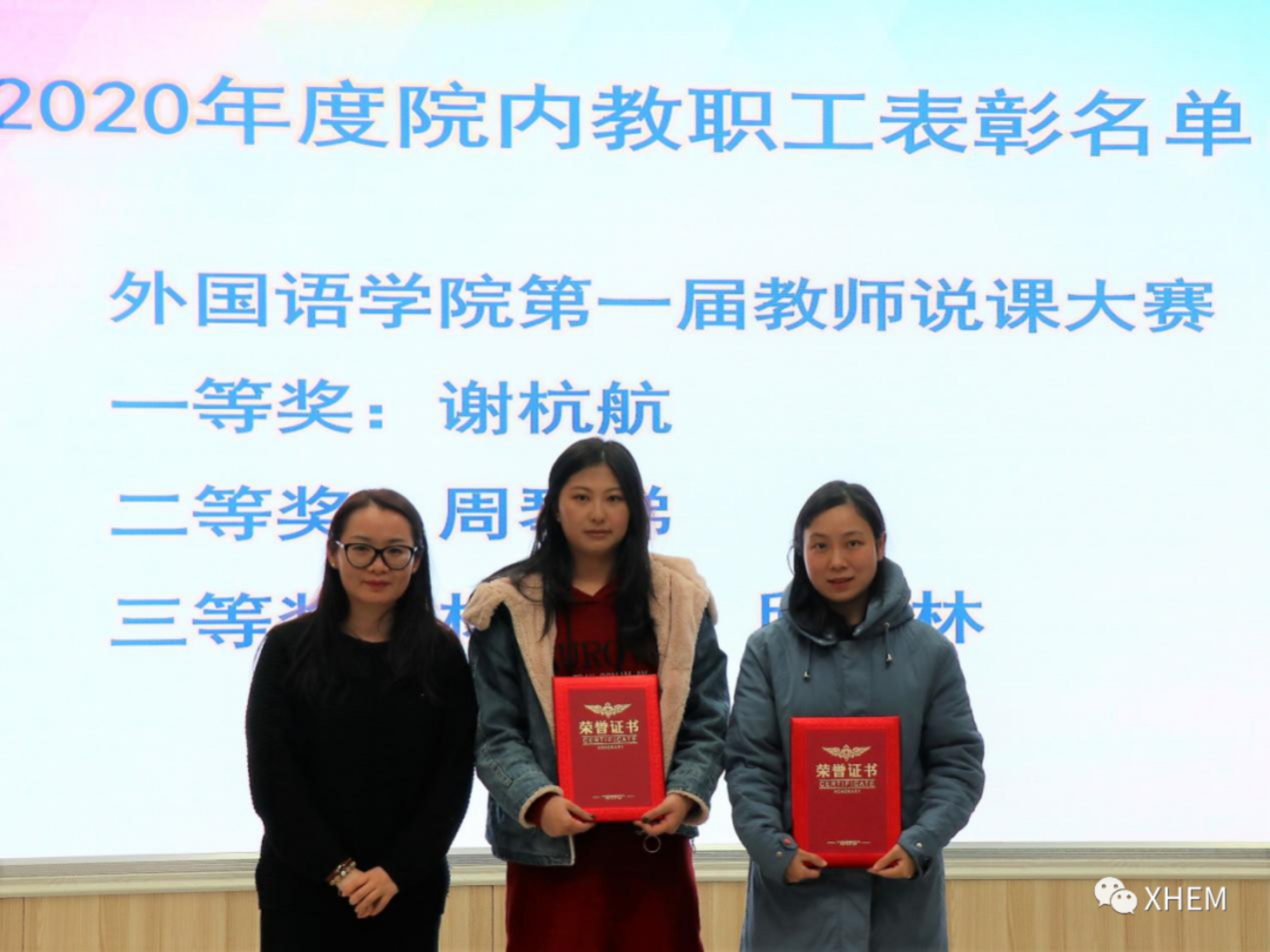 英语专业副主任李贻(左)、西语专业副主任许婷芳(中)、葡语专业负责人韩天歌(右)