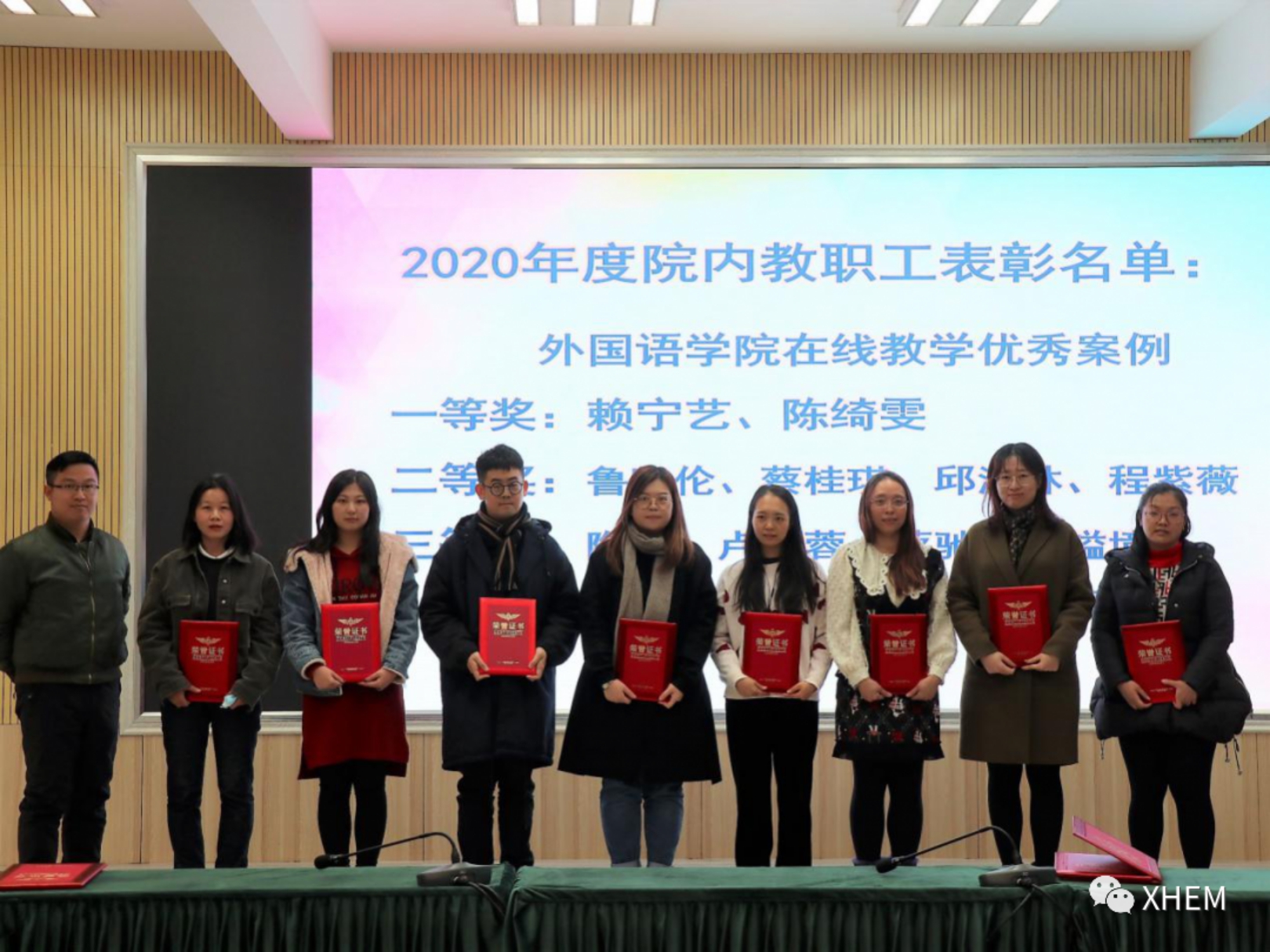 总结大会的最后,进行了太阳成集团tyc2020年表彰大会。首先由秦荔书记为公司优秀督导、师德模范颁奖。随后,太阳成集团tyc办公室汇报了本年度教职工考核情况,详细说明了考核方案及以根据方案产生的年度考核优秀教职工,并结合学院工作公布了学院表彰的一批优秀教职工,廖益清经理、李向奇副经理、邱易安副经理、黄继炎督导、欧衍伽副书记、何瑜院助、李文蓓院助相继对2020年度各项工作表现优秀的教职工进行了表彰。希望外院全体教师能认真总结经验,继续提升学术和教学水平,增强太阳成集团tyc的整体实力!