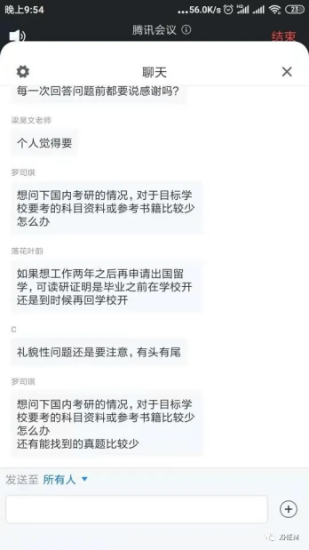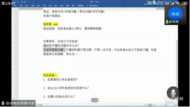 随后,陈伟奇老师和梁昊文老师从备考资料收集、笔试内容、面试常见问题以及面试过程中的注意事项等方面分享了自己考取国内研究生的经验,指出在复试过程中要通过各种渠道如学校官网、百度贴吧、师兄师姐等获得相关学校的面试信息,最重要的是调整好心态认真备考,阅读报考导师的相关文章以及书籍等。