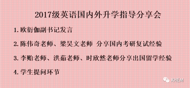 最后,英语专业副主任李贻主任老师分享了英语专业部分学子考研的相关情况,并鼓励英专的同学们在考研过程中调整心态,他强调考研是一个漫长的过程,也是夯实专业知识的过程、同时是不断成长的过程,相信同学们通过研究生考试一定可以获得一份远比结果更重要的人生经历。