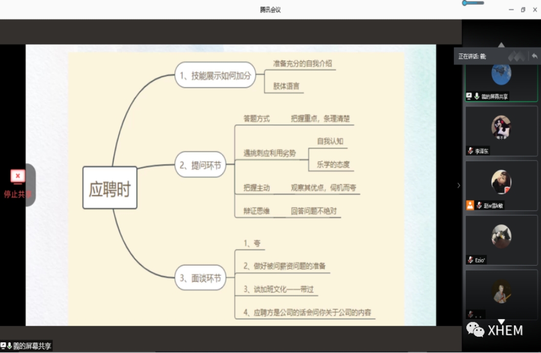 最后,辅导员赵雪敏老师为同学们解释了应届毕业生和择业期的概念,并对同学们日常经常询问的问题作出回答,同时强调在疫情期间,同学们每天仍需坚持报平安,并做好防疫工作和就业准备。