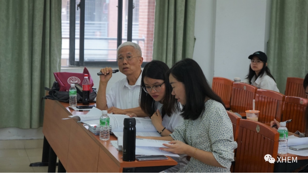 教学督导黄继炎(左一)给答辩员工提出修改意见