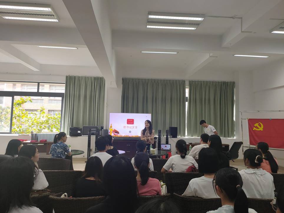 会议第二项议程由公司党总支副书记欧衍伽进行开场发言。首先,欧书记表示:今年是党成立100周年,我们心中的自豪之情油然而生,党的100周年,是不平凡且克服了重重困难的百年,所以,今天的中国人民是幸运的,更要珍惜我们现有的宝贵时光。欧书记还不忘嘱咐在场同学们,要多加学习党史,牢记党的先辈们的光荣事迹,在心中树立伟大的理想,严格要求自己。其次,欧书记祝贺“学习百年党史,凝聚前进力量”公司党史积分答题活动的获奖同学,并说明获奖不是终点,学习党史不能学习皮毛足以,而是要不断深入,往更高台阶迈进。以知识竞赛为契机,以赛促学,要对我们党的历史有更深刻的认识以及收获。