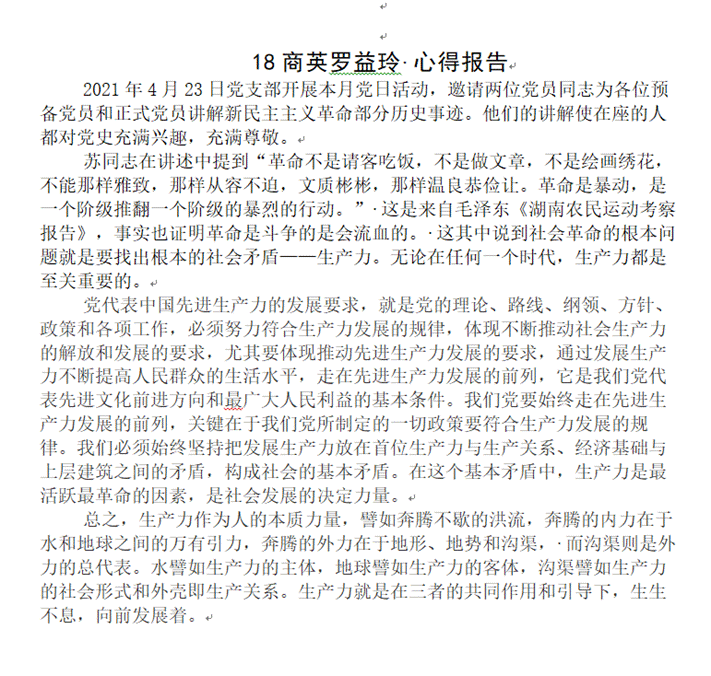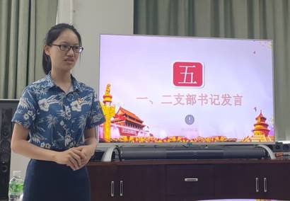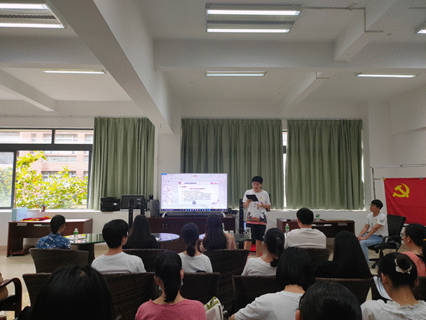 第二项议程是由何墨阳与苏宁同志进行党史学习分享。按照时间线索,苏宁同志分享了新中国成立前的党史,着重分析了新民主主义革命;何默阳同志则围绕着建国后党的“一化三改”等政策展开论述。两位同志在结束党史讲解后也进行了自己的心得分享:通史而自知,唯有清晰,正确地对待历史,心中才会有明确的目标;学史自强,现今中国虽发展迅速,但我们仍要意识到国家还不够强大,需坚定决心,坚持走中国特色社会主义道路。