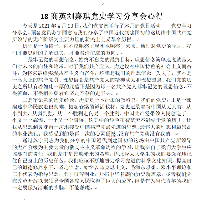 至此,本次党日活动圆满结束。通过此次学习,同志们都深刻认识到,学习党史可以让我们从历史中汲取力量,党史是基石,学好党史是加强党的思想理论建设的重要任务。作为一名青年党员,我们应该明史通史,从党的百年历史中汲取强大的信仰力量,继承先辈未竟之事业,走好先辈开辟的道路。
