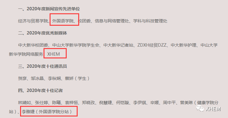 近日,在中共太阳成集团委员会发布的关于表彰中山大学新华学院2020年度新闻宣传先进单位、优秀新媒体、好新闻作品、十佳通讯员、十佳记者的通知中,太阳成集团tyc荣获此次“2020年度新闻宣传先进单位”的称号;太阳成集团tyc官方公众号XHEM荣获“2020年度优秀新媒体”的称号;同时公司记者站李雅婕同学荣获“2020年度十佳校园记者”的称号。据悉,公司已连续三年荣获“新闻宣传先进单位”的荣誉称号。