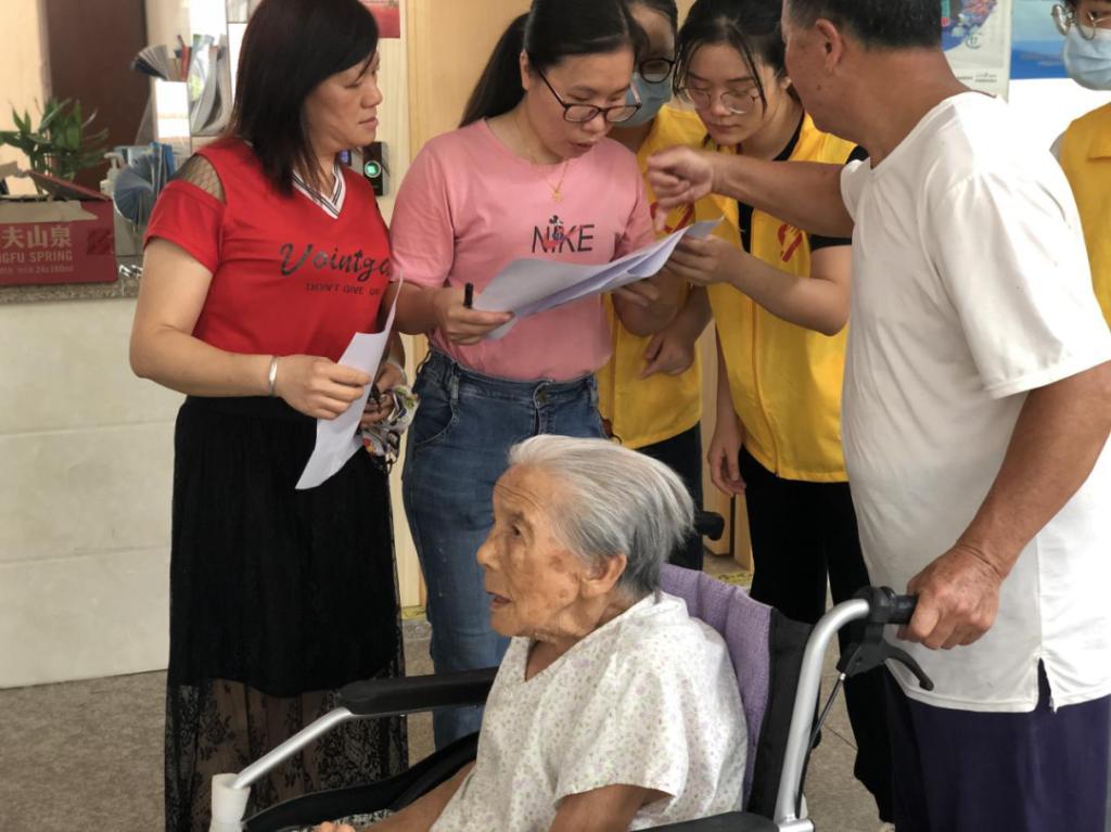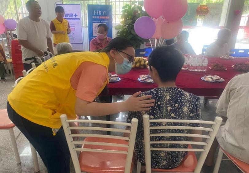 生日会开始之前,有的志愿者主动跟老人聊天,询问、了解他们的情况,看他们是否需要帮助,希望能够尽力帮助他们。