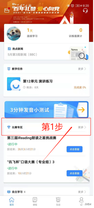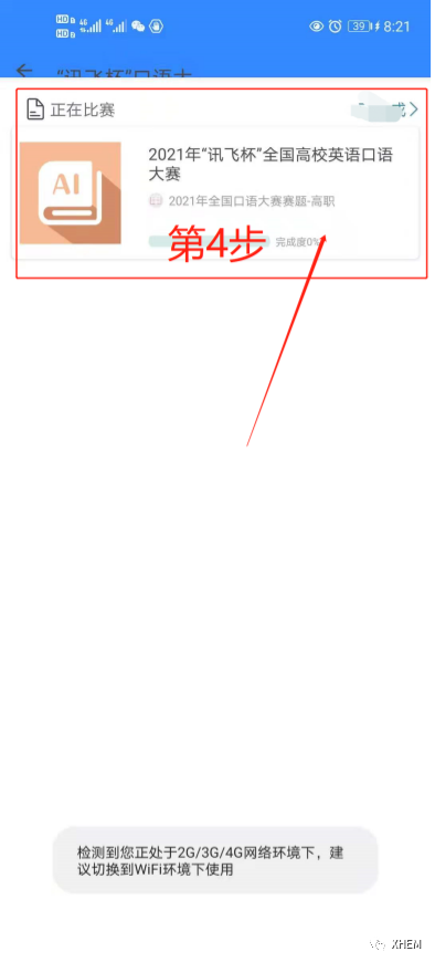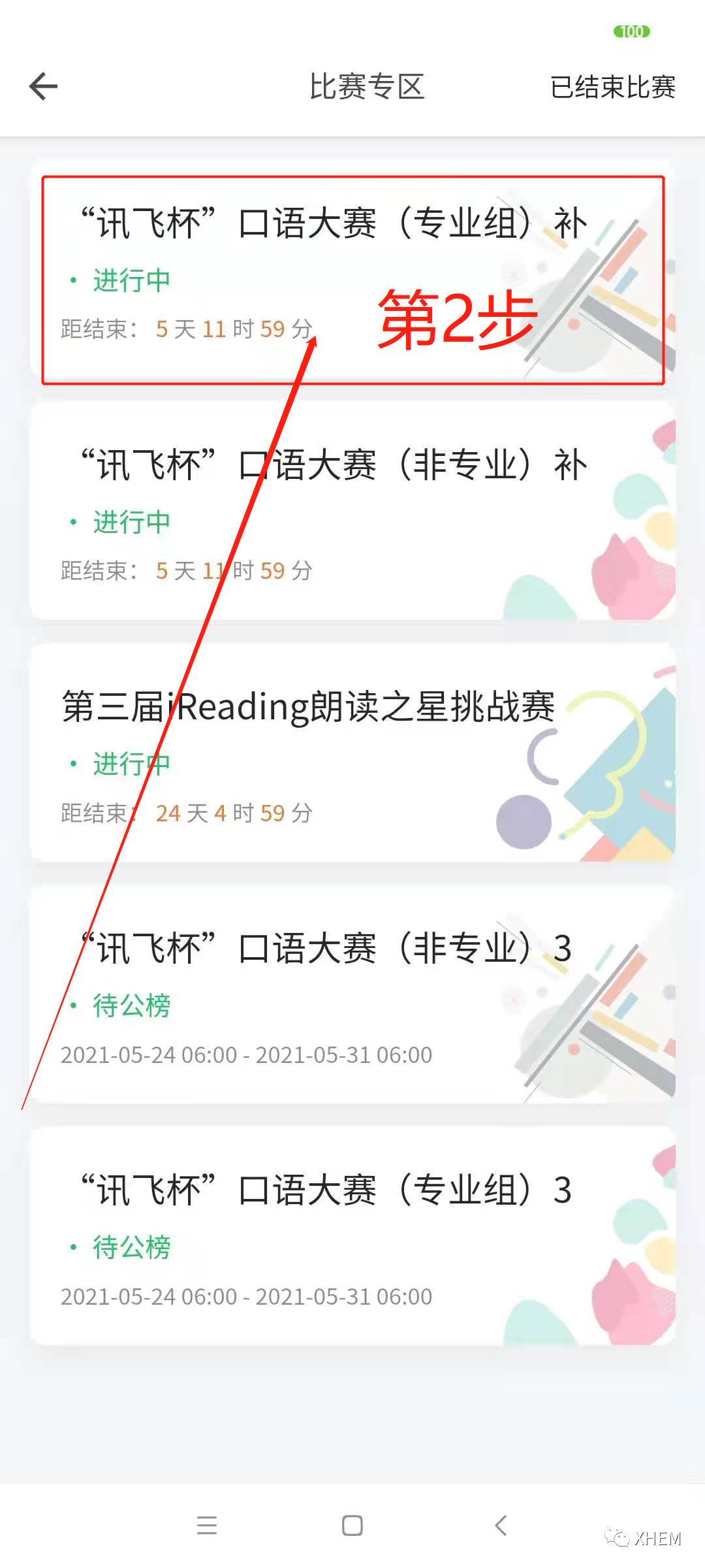 【考试流程】(操作截图如下)1. (员工)登陆 “FiF口语训练”员工版APP,进入 “比赛专区” -“讯飞杯”口语大赛(非专业)补-进入比赛-2021年“讯飞杯”全国高校英语口语大赛(2021年全国口语大赛赛题-高职)。2. (员工)完成比赛指定10段话的跟读任务,获得A.I.智能评分。3. (专家)在比赛截止后进行人工评分。4. (教师)导出所有员工比赛成绩。