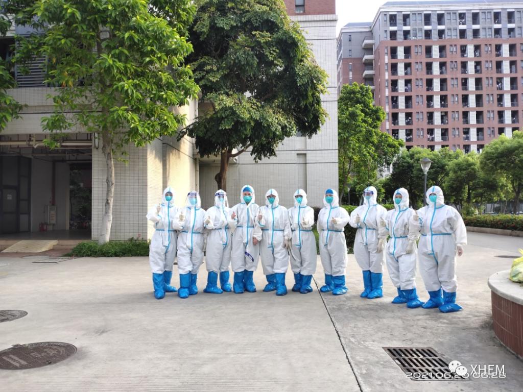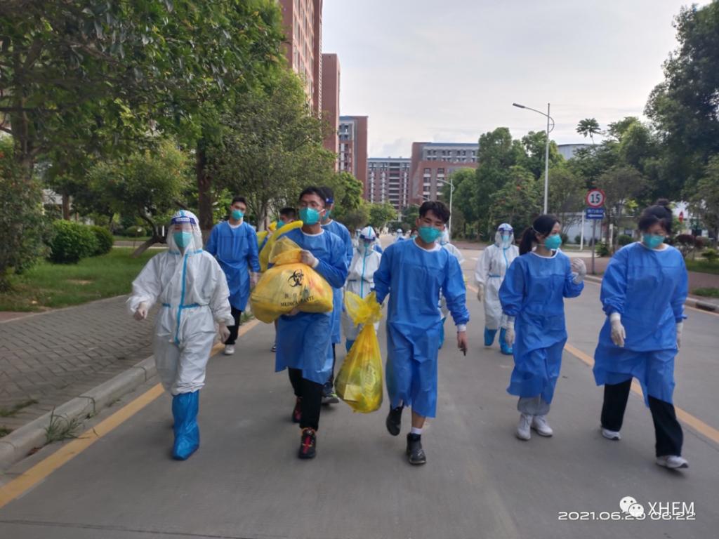 “穿上所有装备,与医护人员一起并肩作战,这是一件非常有意义的事!虽然我只是穿了5个小时左右的防护服,但身上几乎都是汗水,脸已经被压得出现一条深深的痕迹了。令人难以想象的是,我们的医护人员穿着比我们更厚的防护服一整天地检测核酸,会有多么难受。我们不敢喝水,也不敢上厕所,因为一脱就会浪费防护物资。上一年武汉等地医护人员的辛酸莫名地涌上心头,令人心疼。由衷感谢每一位医护人员的无私奉献!各位志愿者朋友们也辛苦了!非常感谢学校全体师生的积极配合完成核酸检测工作!”廖艺雯同学在结束志愿者工作后发出感叹。