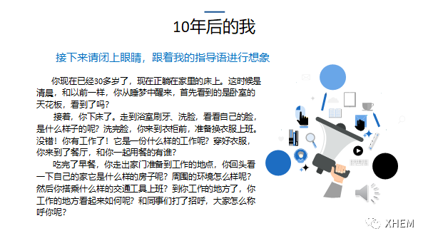 看完微电影后,大家感慨纷纷,紧接着主持人又跟大家分享了哈佛大学对一群智力、学历、环境等条件都差不多的年轻人的25年的规划目标调查,25年后的跟踪调查显示目标明确的人成了各行各业的精英,目标模糊的人,生活充满不如意。可见好的职业生涯规划能让大家在接下来的生活中越走越顺,随心所欲。接着主持人再给大家分享了老员工的现状调查并带大家一起生涯规划幻游,想想自己十年后想成为什么人,在职业幻游结束后,大家纷纷在班群上发十年后的自己的答案。最后,主持人带领大家一起系统的学习如何职业生涯规划,希望同学们十年后能成为自己想成为的人。