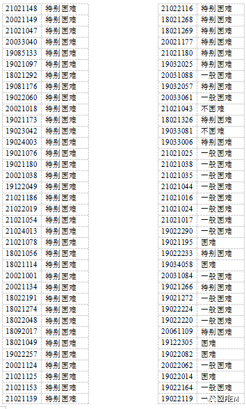根据《广东省教育厅关于做好2021 年秋季学期员工资助工作的通知》(粤教助函〔2021〕7号)要求,经员工自愿申请,全国资助系统根据全省申请员工情况进行划线定级,现将2021年家庭经济困难员工认定结果公示如下: