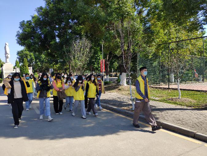 全体党员领取志愿服,有序排好队形,在负责人的带领下,教师党员与员工党员伴着阳光出发,欢欣踊跃地前往学校主校道(15栋旁),搬运并领取刷漆工具。