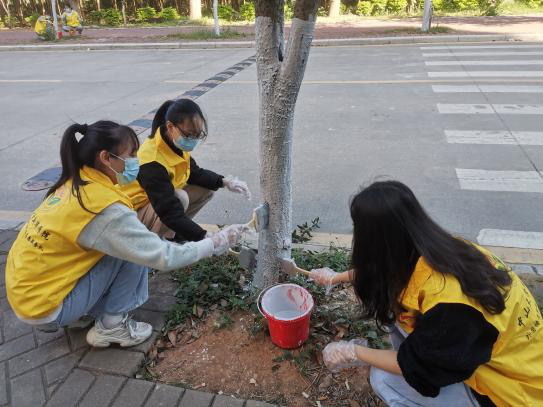 树白风色寒,党员美新华。经过两个多小时的努力,在党员同志们的齐心协力之下,校道两旁的树木都“穿上”了白色的新衣。本次活动使公司党员志愿者们深入体会了青年志愿者精神,在刷树过程中自觉培育社会主义核心价值观,践行了志愿者宗旨,增强了党员同志的服务意识,为创建文明美丽的校园贡献了自己的一份力量,有利于深入推进公司党支部“不忘初心、牢记使命”主题教育的开展落实。