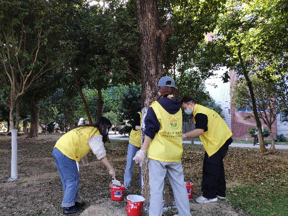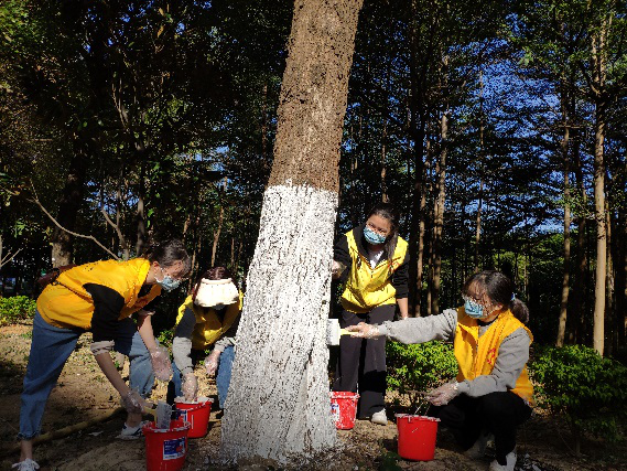 在刷树的过程中,党员同志们认认真真,一丝不苟。他们小心地呵护着每一棵树,一棵树接着一棵树地刷,很快便掌握了刷树的要领,越发地熟练起来。大家全身心地投入到刷树活动中,全然忘记了自己已经刷过了多少树,上下来回挥动了多少次手臂。尽管石灰已沾在手上、鞋上和衣服上,他们依然不管不顾;尽管多次地弯腰已让他们感到十分辛苦,但他们也没有抱怨过一声;尽管大树的树皮开裂严重,需要多次返工,但党员同志们不怕脏、不怕苦、不怕累,坚持将工作完成好,每一位党员同志都是如此。大家齐心协力,互帮互助,在不到两个小时的时间里为范围内的树木全部穿上了新装,圆满完成了此次刷树的任务,他们乐在其中,享受志愿服务的快乐,每个人脸上都洋溢着因劳动而收获的喜悦笑容。他们将刷树活动看作是一次独特的人生体验,将志愿活动看作是一次特别的生命体会。