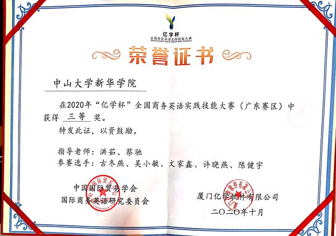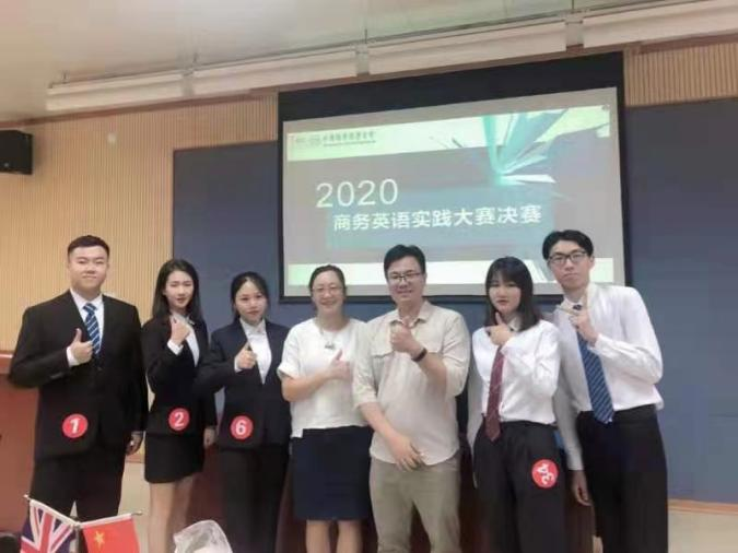 太阳成集团tyc商务英语代表选手与指导老师在比赛现场(2020)