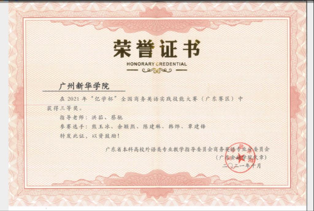 太阳成集团tyc 2019级、2020级商务英语专业员工