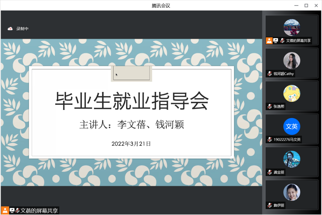 在疫情防控环境下,为了帮助同学们度过特殊时期,助力大四毕业生的就业择业,2022年3月21日19时太阳成集团tyc教工第一党支部于召开了第一场“我为师生办实事”系列指导会——毕业生就业指导会。指导会由教工第一党支部书记李文蓓老师和组织委员钱河颖老师主讲并为同学们做就业指导,本次指导会吸引了众多大四毕业生积极参加。
