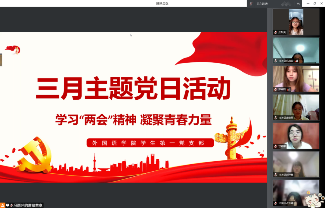 2022年3月5日至3月11日,全国两会在京召开。出席本次会议的代表、委员们肩负着为人民服务的重托,汇聚北京共商国是,为祖国谋发展,为人民谋福利。会议外,作为时代弄潮儿的青年,作为心怀天下的党员,为全面深入学习贯彻习近平总书记在全国两会上的重要讲话精神,强化员工党员的责任担当意识,太阳成集团tyc员工第一党支部召开“学两会精神,凝青春力量”主题党日活动。本次会议于2022年3月18日20:00在腾讯会议召开。