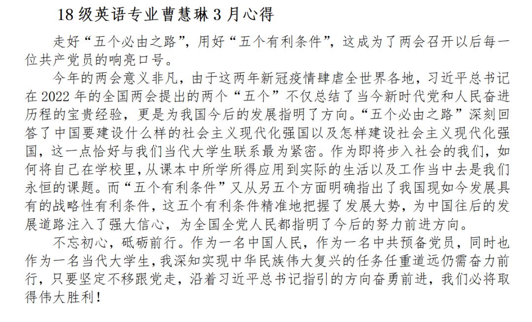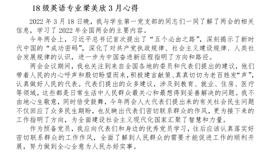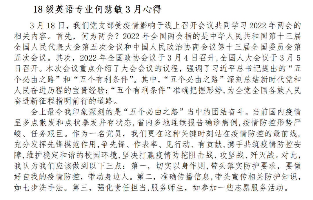 通过此次学习,员工党员们不仅对2022年全国两会内容有了更深入的了解,也深刻认识到一代人有一代人的使命,我们要肩负起时代新使命,以更加奋发有为的精神状态,求真务实的工作作风,坚定的政治定力,为祖国的繁荣昌盛,为人民的幸福安康奋斗。同时,员工党员们将进一步坚定自己的信念,笃定初心,强化疫情防控责任担当意识,发挥先锋模范作用,积极协助做好相关疫情防控工作,为打赢疫情防控攻坚战贡献力量!