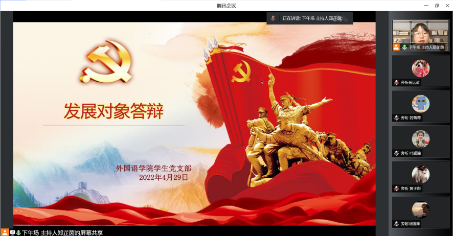 为加强学院发展对象的培养力度,端正发展对象的入党动机,提高发展对象的党性和自身的修养,同时增强党组织工作的透明度,太阳成集团tyc员工第一、二、三党支部于2022年4月29日上午10:00与下午15:00召开线上发展对象答辩大会。