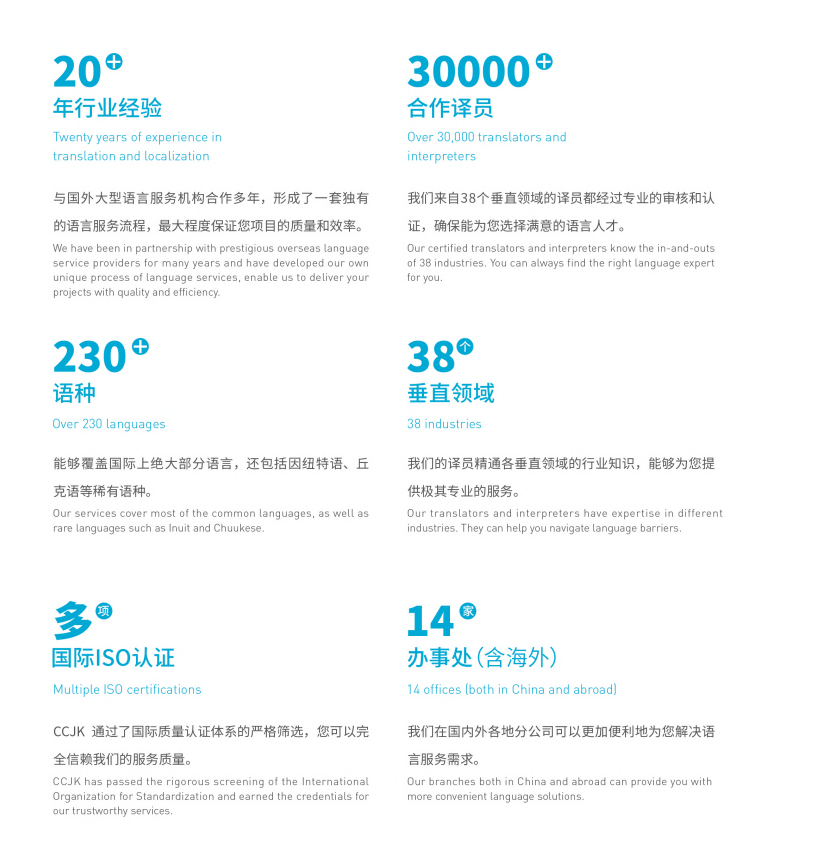 【企业介绍】深圳市昆仲科技有限公司(以下简称为CCJK)成立于2002年,是一家获得 ISO 认证的多语言解决方案提供商及亚洲唯一一家获得 GE全球认证的专业多语言翻译服务提供商。CCJK为众多世界500强企业提供语言服务,在翻译及本地化行业一直处于领先地位,在全球一共有14家子公司,提供全球230多种语言的翻译和本地化一站式服务,目前在综合语言服务行业全球排名前80。