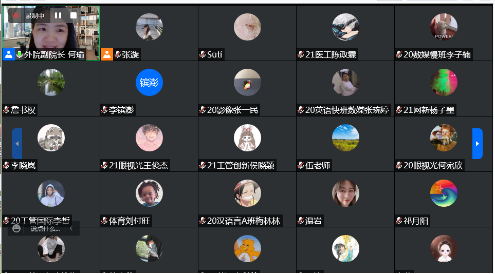 会议最后,何瑜副经理进行总结,她表示同学们对于老师们的赞赏不仅肯定了老师们的授课能力,更是肯定了大学外语教学中心近两年的课程改革及开设ESP,线上线下口语、语法混合式教学的必要性。同时,何瑜副经理也指出座谈会以教师和员工交流谈话的方式进行,有助于加强师生之间的交流和了解,有助于教学信息互通和互联,有助于教学工作改进。会后会将同学们的想法和建议传达至各位老师,也希望各位同学能够积极与老师交流沟通。