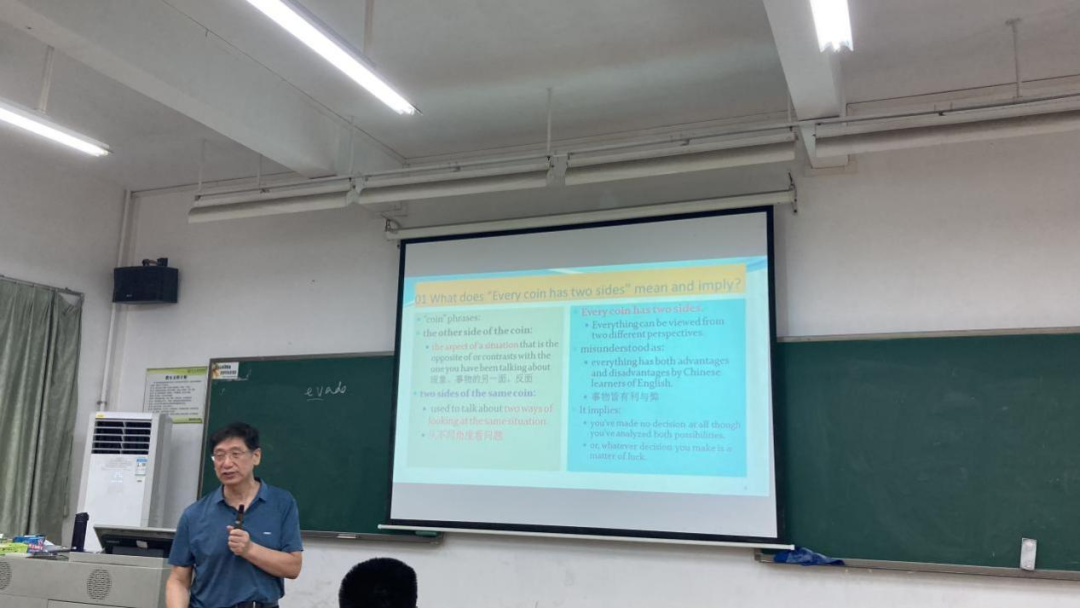 首先,赵教授解释了批判思维的重要性。通过对比国内外英语写作考察重点的区别,赵教授指出了写作的灵魂,即逻辑,即批判。他以写作模板中常见的对“Every coin has two sides(凡事都有双面性)”一句的误读为例,强调这句话是指“从不同角度看问题”而并非“事物皆有利有弊”,以此提醒同学们在写作中要避免类似“every coin has two sides”的“无比正确的废话”,具体来说,即避免泛化写作,无确切目的的写作,而是要在写作中提出针对性的解决方案或观点,帮助读者看到作者眼里的世界,而非作者揣摩的大众眼里的世界,即突出写作的“contribution(贡献)”。