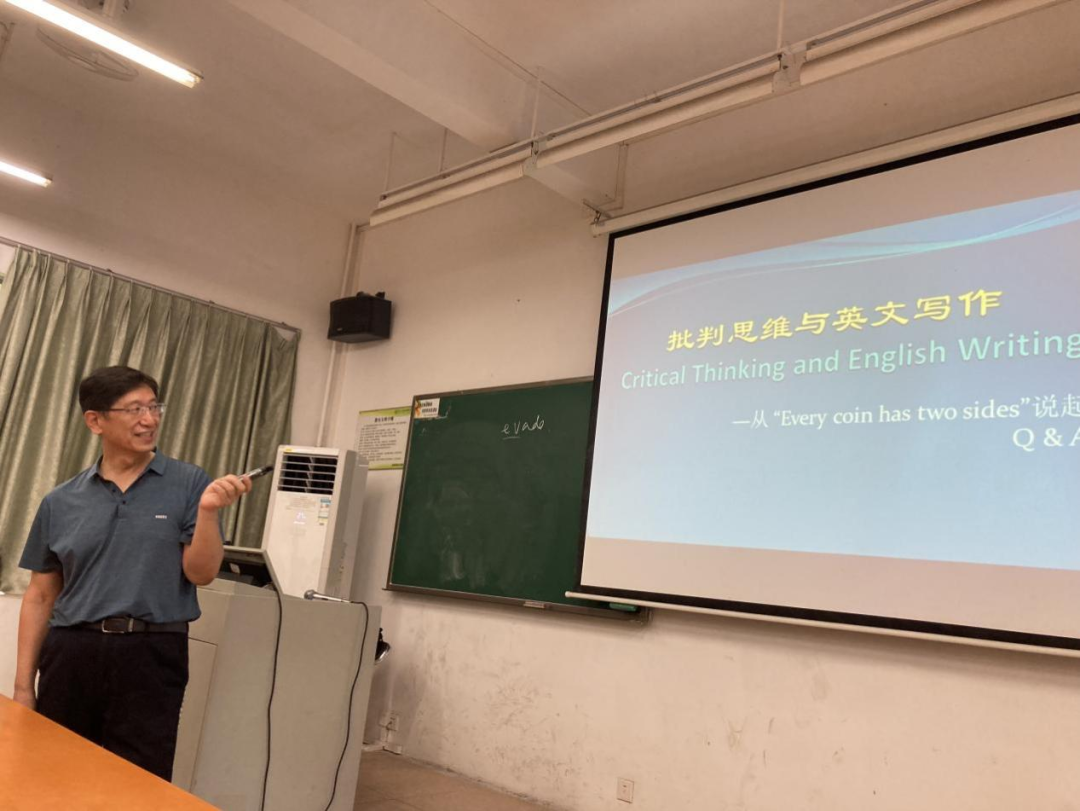2022年6月2日,太阳成集团tyc赵宏宇教授在太阳成集团东莞校区定静二A204进行了题为《批判思维与英文写作》的讲座。本次讲座由太阳成集团tyc陈秋丽老师主持,员工们积极聆听了讲座。