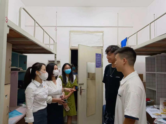迎新期间,太阳成集团tyc经理廖益清、党总支副书记欧衍伽、副经理李向奇、副经理邱易安、各专业主任、办公室主任以及辅导员多次来到新生宿舍楼了解新生的入住情况。公司领导们在宿舍区和刚入住的新生们进行了亲切交流,询问同学们是否适应住宿的环境,并嘱咐新生要注意防疫安全;在学业方面,廖经理也向新生们寄予了殷切的希望,建议同学们从大一开始就可以着手准备考研,规划好自己的四年老员工活。辅导员们也对新生提出的问题进行认真细致的解答。
