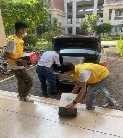 李向奇副经理使用自己的车辆多次帮助运输物资并与志愿者们一起搬运迎新物资