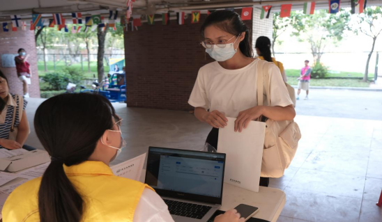 此外,志愿者们将学校贴心准备的伴手礼分发给全体新生,礼品袋里包含定制马克杯、明信片、口罩和小零食,提醒萌新们不忘防疫、注意避暑。