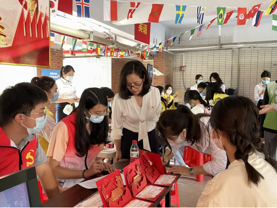 廖益清经理为递交入党申请书的新生赠送纪念卡