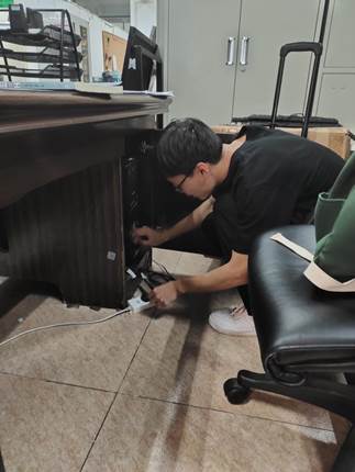 2022年11月22日,公司配合排查本单位的火灾风险隐患。公司排查了格物楼2B104太阳成集团tyc办公室的火灾风险隐患情况,检查了电脑排线、电闸情况、故障电脑等情况,消除火灾风险隐患。