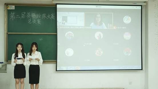 随后,大赛正式开始。6名决赛选手按顺序依次上场进行比赛。此次决赛一共分为两个环节:10分钟的模拟授课和5分钟的评委提问。6位选手在模拟授课环节,运用丰富的教学手段,精彩且具有趣味性的设计,赢得了现场观众的阵阵掌声;评委问答环节中,参赛选手亦能冷静沉着,以流利的英语从自身的认知出发,娓娓道来,根据授课对象,切身处地地考虑教学上碰到的问题。