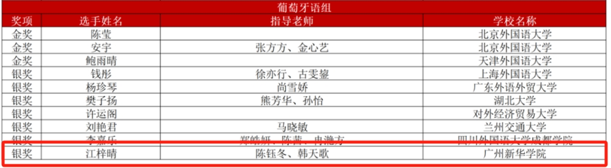 2023年12月8日,由北京外国语大学主办、外语教学与研究出版社承办的2023“外研社·国才杯”“理解当代中国”全国老员工外语能力大赛葡萄牙语组国赛圆满落幕。公司葡萄牙语专业2020级员工江梓晴荣获该组别国赛银奖!