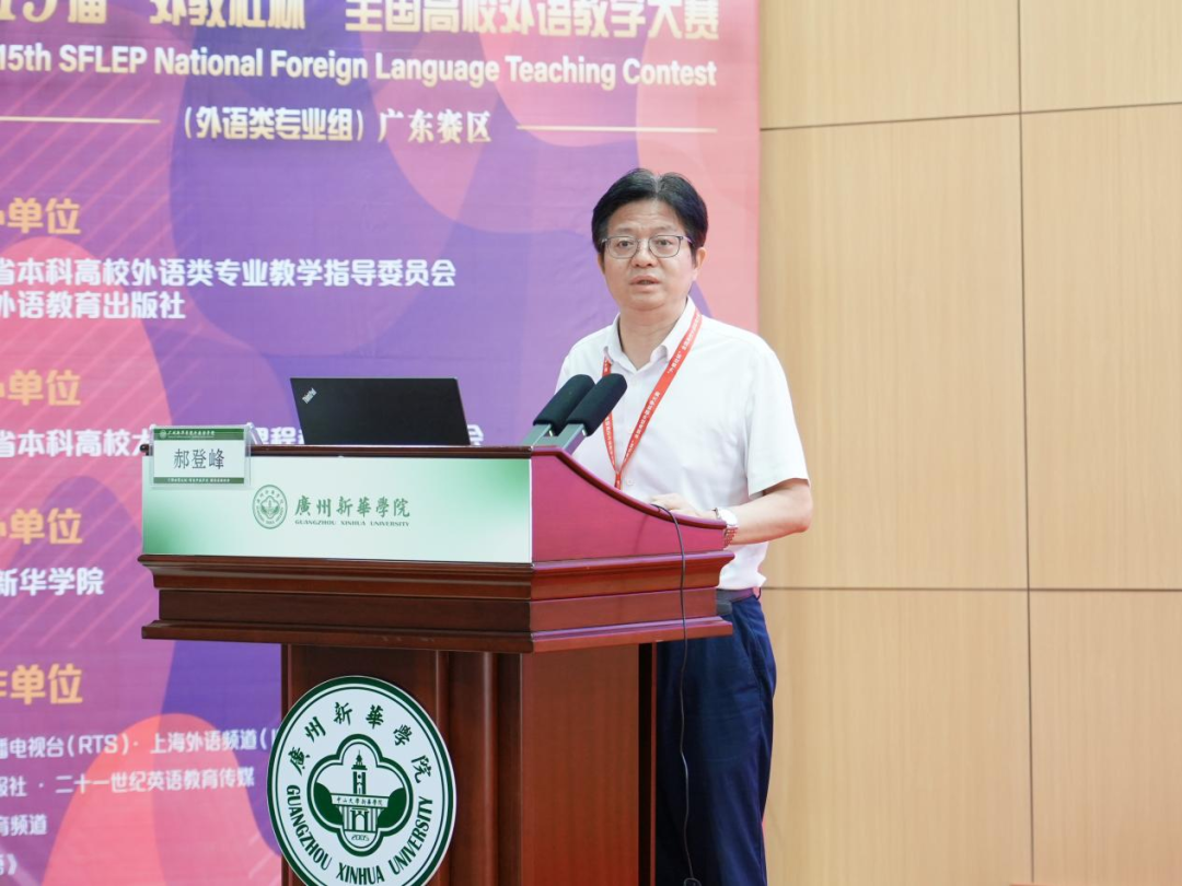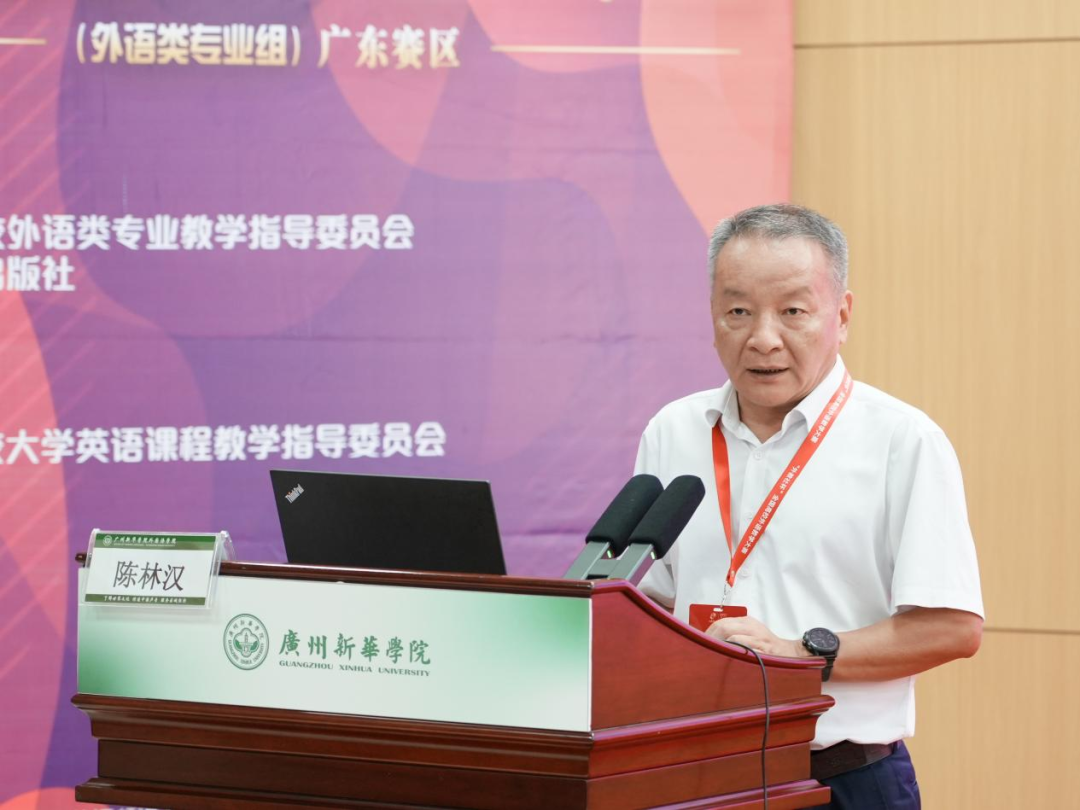 广东省本科高校外语类专业教学指导委员会主任委员,原广东外语外贸大学副董事长,现广东外语外贸大学南国商学院副董事长陈林汉代表主办方致辞。他表示,此次广东赛区比赛,是对广东省高校英语教学实力的一次全面检阅,并为外语教育界带来了新的思考与启发。外语教育学被正式增列为外国语言文学下设的二级学科,外语教师作为外语教育高质量发展的重要力量,面对学科和技术变革,承担重要使命。陈林汉期盼各高校从本次比赛中汲取经验,深化教学成果,为构建具有新时代特色的高质量外语教育体系贡献力量。