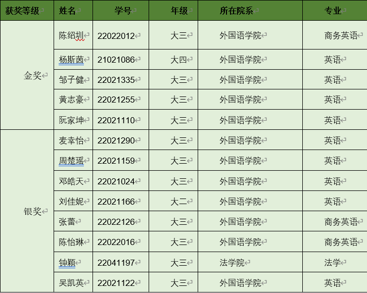 通过本次比赛,选手们展现出公司莘莘学子的竞赛风采,激发了潜能,提升了英语笔译实战能力。经过本次大赛组委会系统评分,校内初赛获奖名单出炉啦!