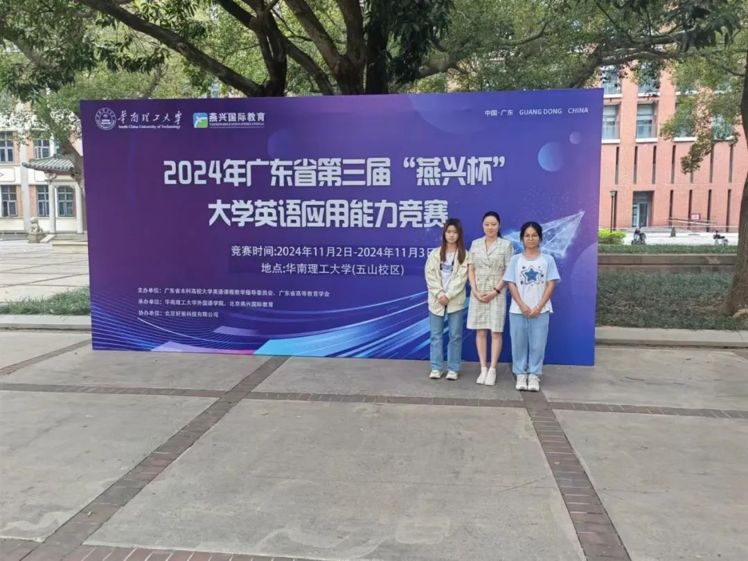 刘清源老师带领胡欣怡和曾琪玲参加2024年广东省第三届“燕兴杯”大学英语应用能力竞赛复赛,两名员工均荣获省赛三等奖