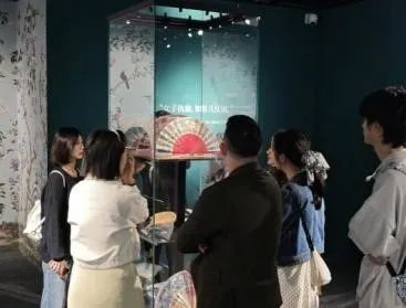 图|讲解员介绍外销扇、师生共赏文物、讲解员介绍藏品